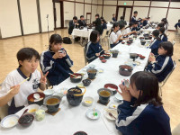 今日の奈良の研修では、社会科の授業で学んだ多くの歴史的建造物を巡りながら、その規模の大きさや歴史の奥深さに垣生中生の多くが驚いていました。その中で、みんなで元気よく歩いて活動したため、夕食はしっかり食べてエネルギーを補充していました。